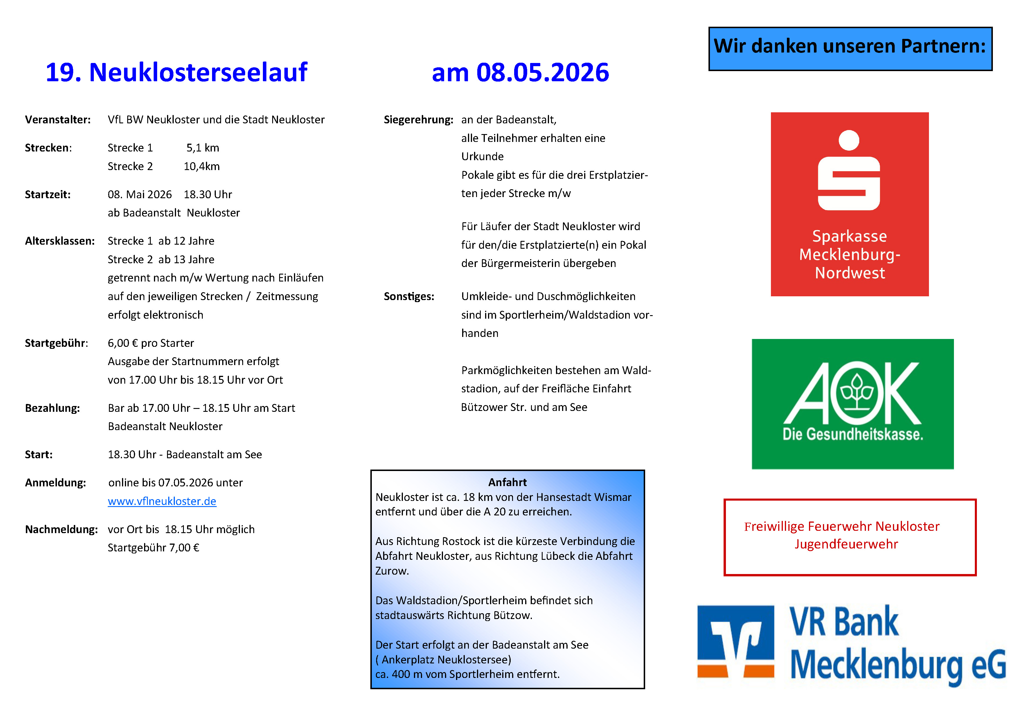 Hier könnt Ihr euch zum 19. Neuklosterseelauf anmelden: Hier klicken!